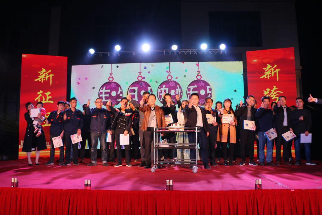 以一九年12月及二零年1月生日員工為代表,壽星上臺領取生日蛋糕及生日禮物,由二位生產(chǎn)部主管頒發(fā)。祝愿臺上的各位生日快樂,也為臺下的各位同仁喝彩,你是醉(pàng)棒的!